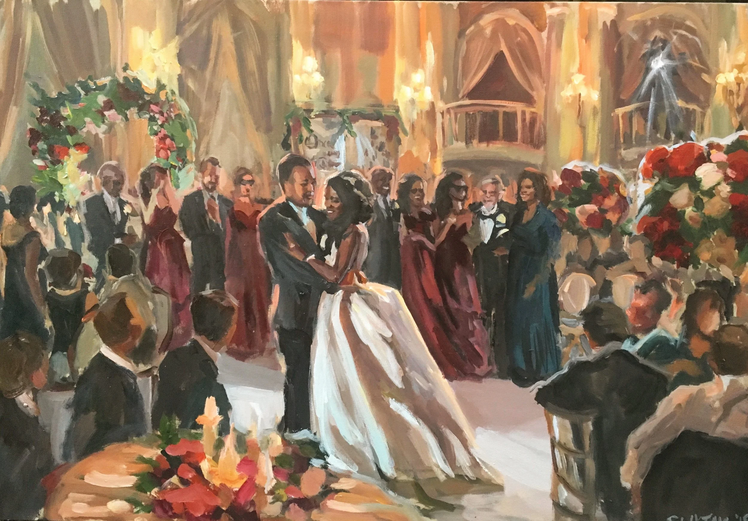 We researched a few event painters and felt Laura had exactly what we were looking for. All the portraits I reviewed on her website moved me. I felt like I was there in the moment - and that's exactly what we were looking for.